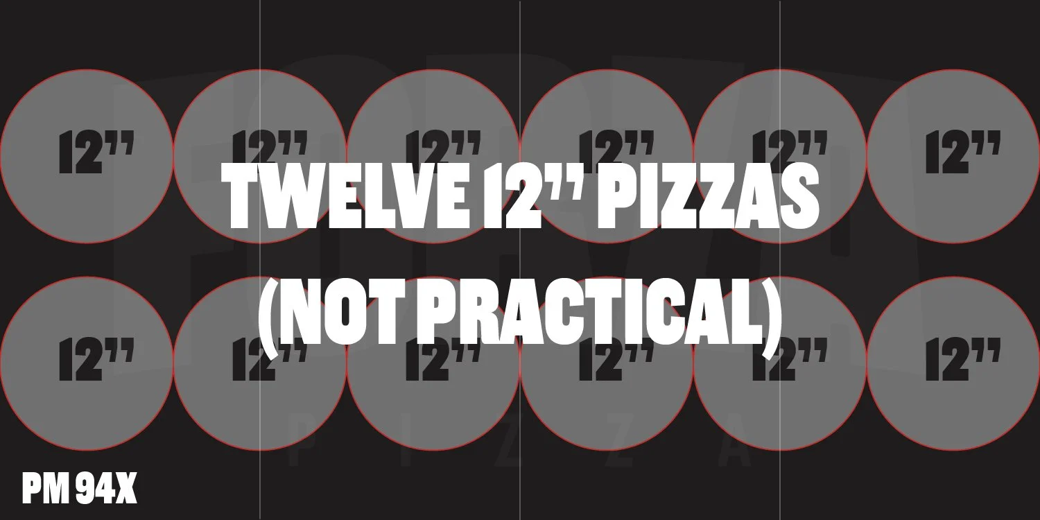 With so many PizzaMaster models, and so many different pizza sizes, calculating how many pizzas of each size can fit in all the different models will make you dizzy. We know because we just did it…