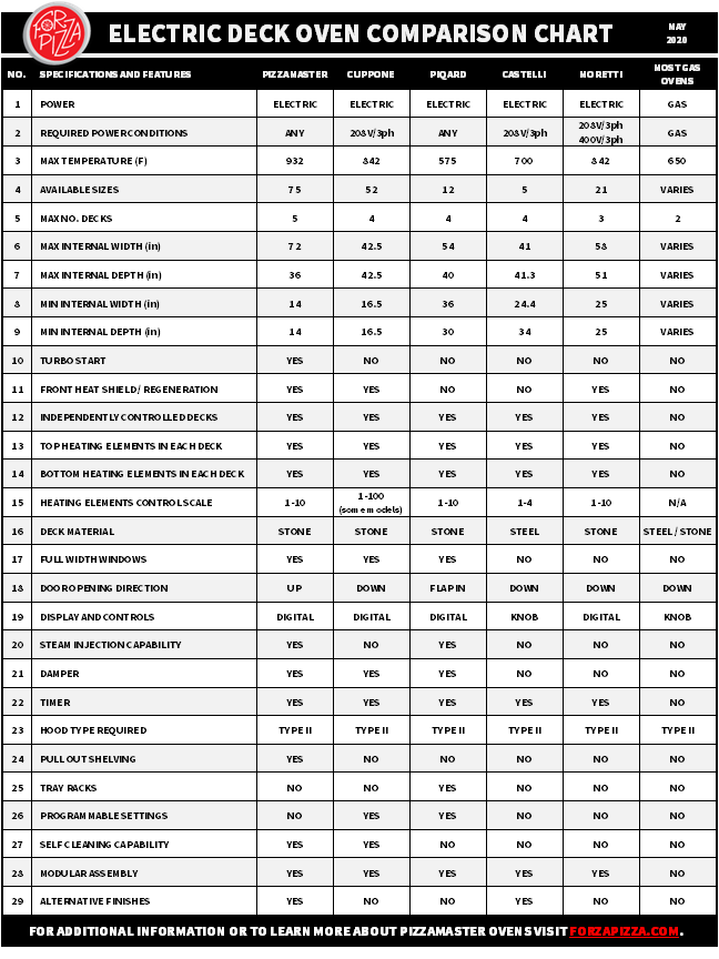 I get it, there are choices out there and sometimes they are hard to keep straight. Not anymore. This comparison chart brings you nothing but the facts about the electric deck ovens available in the USA today.
