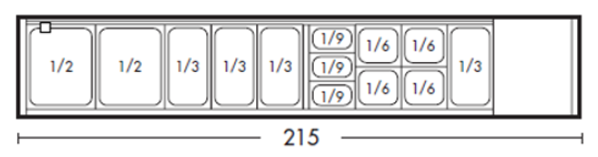 Two door, one drawer refrigerated prep table with a granite top and raised ingredient rail.